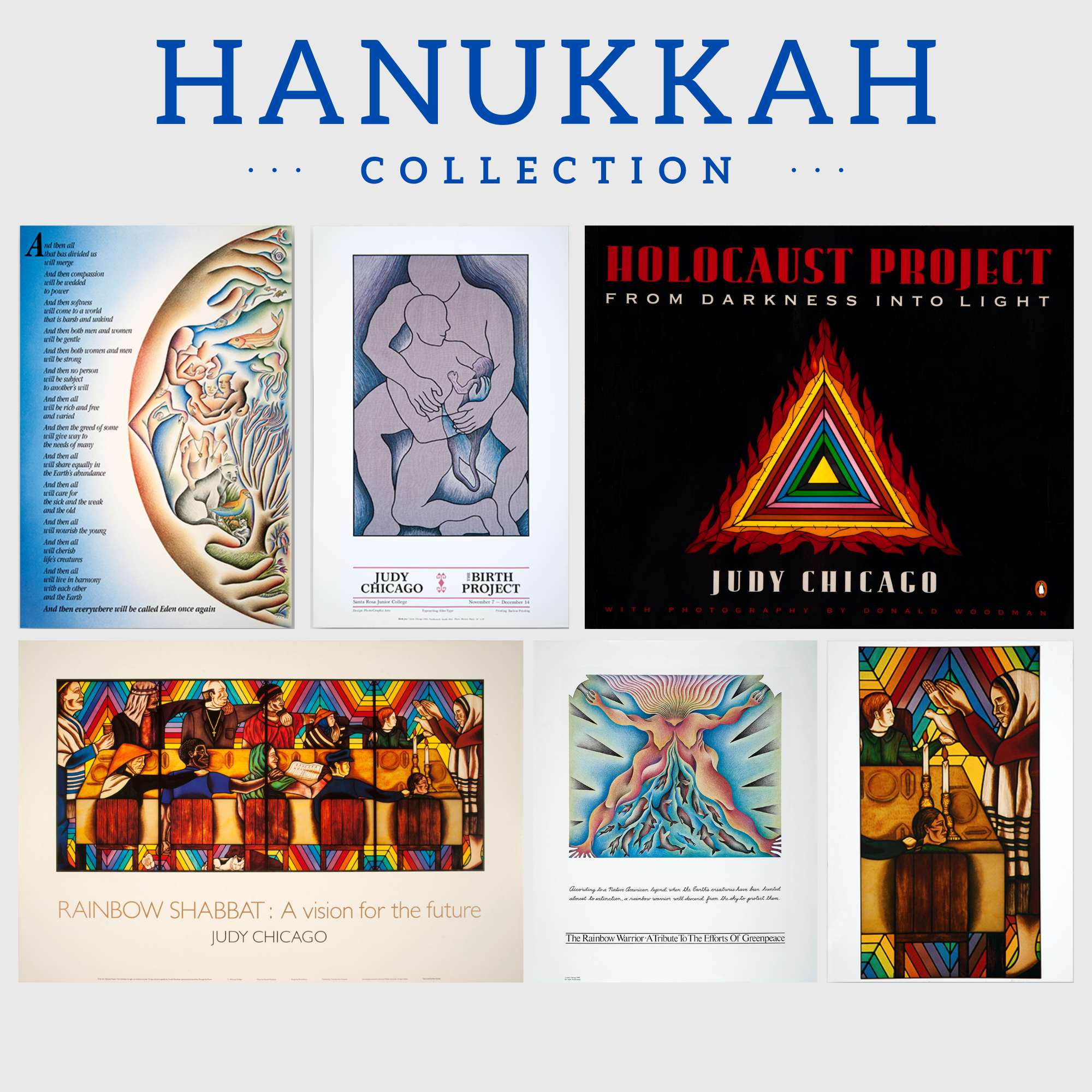 Celebrate the season with a powerful and meaningful collection of artwork that reflects Judy Chicago’s deep commitment to social justice, history, and the Jewish experience. This curated Hanukkah Collection brings together iconic pieces that span themes of memory, resilience, and the ongoing fight for a better future, making it a perfect gift for those who appreciate art, history, and the intersection of culture and activism.